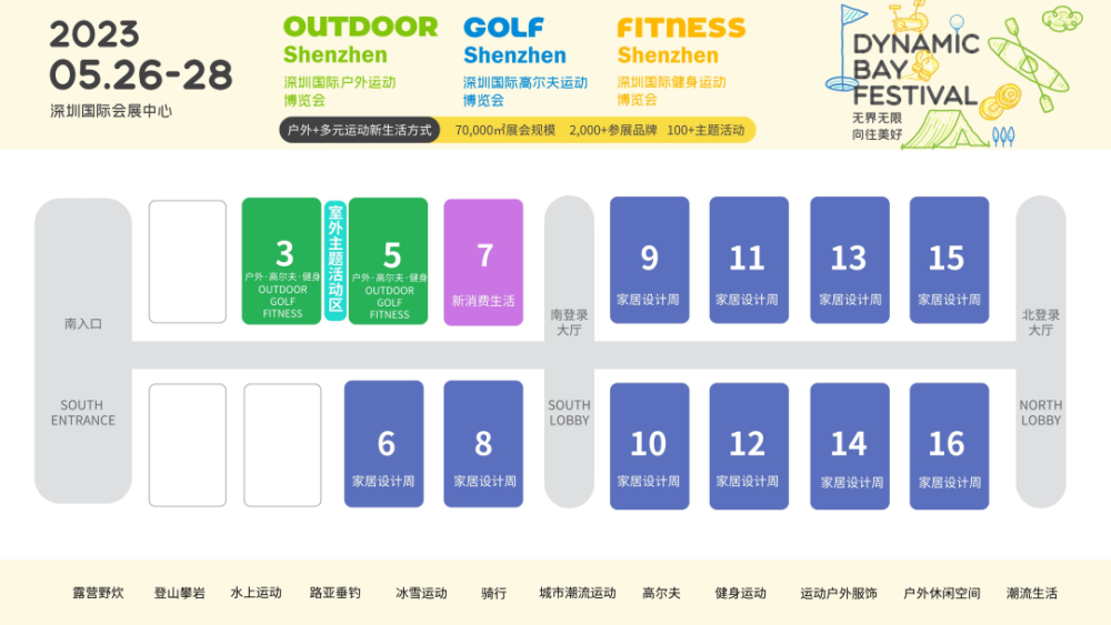 2023年5月26-28日,华南区***规模的户外生活方式旗舰展,第四届DBF深圳国际户外运动博览会即将在深圳国际会展中心(宝安)开幕!2000+国际知名户外运动品牌联袂展示,涵盖露营野炊、水上运动、路亚垂钓、自驾骑行、冰雪运动、高尔夫、健身等十大运动板块。